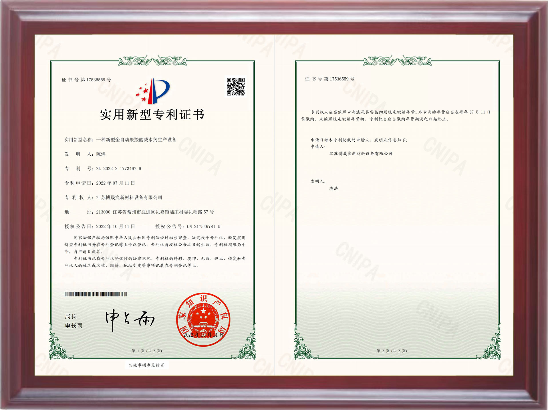 江蘇博晟宸新材料設(shè)備有限公司(以下簡(jiǎn)稱博晟宸)專注于混凝土外加劑生產(chǎn)設(shè)備的研發(fā)與制造!我們秉承“誠(chéng)信經(jīng)營(yíng),用心服務(wù)”的企業(yè)宗旨,竭誠(chéng)為您提供優(yōu)質(zhì)的產(chǎn)品和滿意的服務(wù)!我們注重細(xì)節(jié),不斷創(chuàng)新,實(shí)現(xiàn)合成復(fù)配設(shè)備智能化,一機(jī)多用。竭盡全力為客戶節(jié)省成本,免費(fèi)提供建廠方案的指導(dǎo),免費(fèi)提供生產(chǎn)配方,免費(fèi)提供技術(shù)支持!